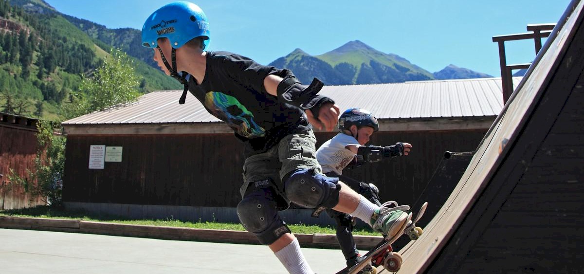 Channel youthful energies at the Telluride Town Park Skate Park, featuring a half-pipe-style vert ramp and double mini-ramp with roller transition and vert wall. The skate ramp is a great hangout spot for the young and the young-at-heart. The Drop Boardshop also offers an indoor skatepark and camps for kids.