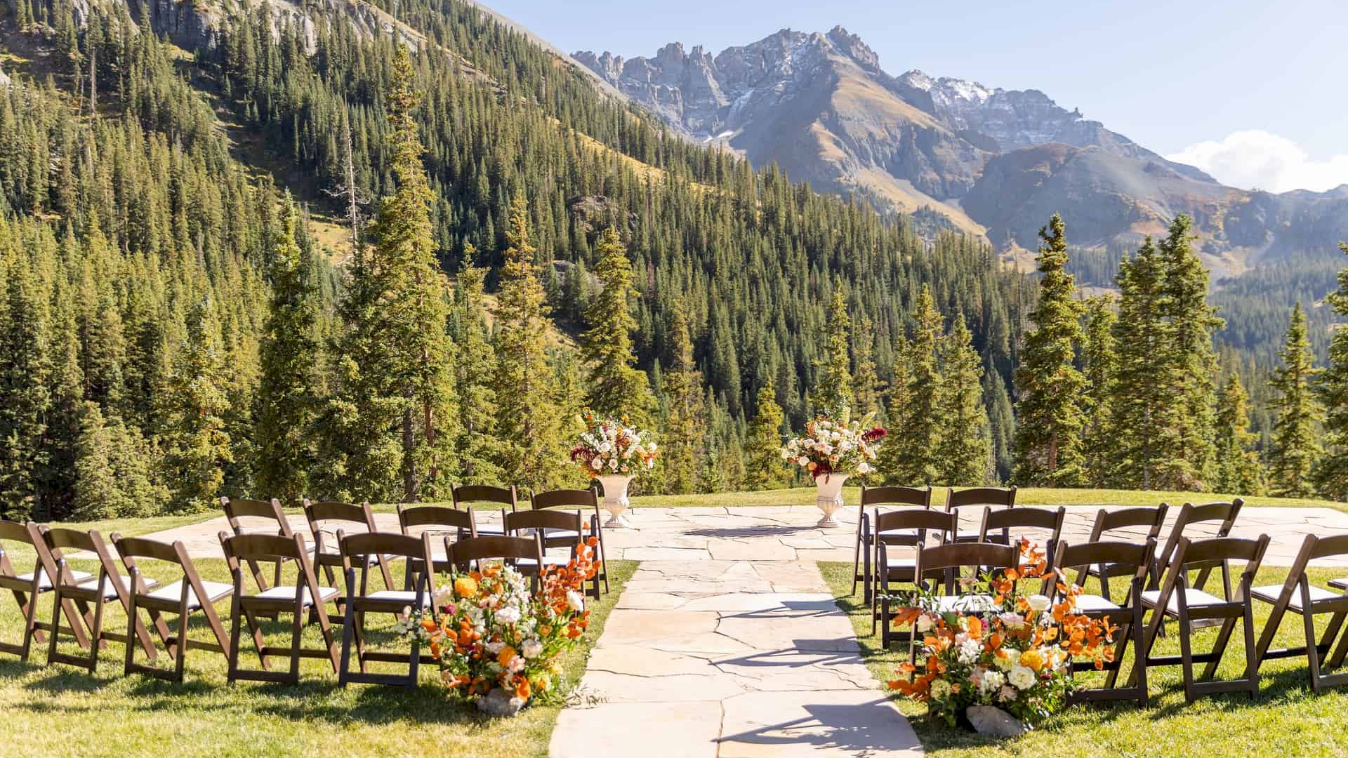 In Telluride, seclusion among the mountains is never too far away. Travel up to a clearing in the forest to make your vows before the resplendent Palmyra Peak. This newly-built ceremony site is located at the top of Lift 5, the Polar Queen Express, and features a natural stone aisle and platform that blends into the scenery.