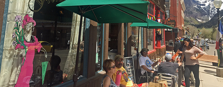 Sheridan Chop House: A staple in the Telluride community, the Sheridan Chop House is a great place for an upscale meal right on Main Street. The patio offers great views of the flower boxes, Ajax, and everything that makes Telluride… Telluride. Not only are their dinners excellent (try the bison ribeye!) but they also serve breakfast and lunch.
