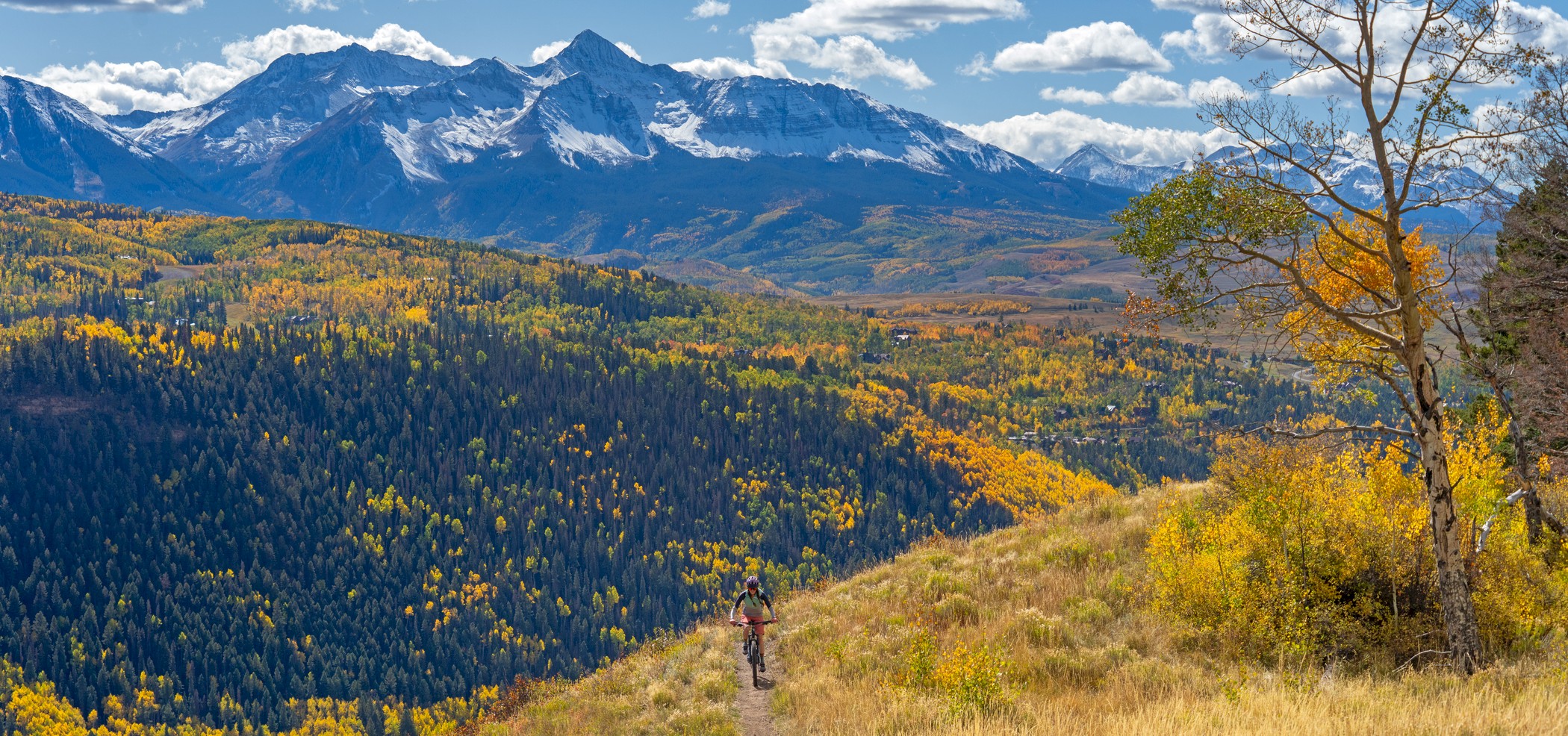 In Telluride, he suggests starting on the Valley Floor Trail. If you’re willing to make a short drive, he says, “the Aldasoro Trail is a great accessible ride with the most epic unobstructive panoramic view of our area.”