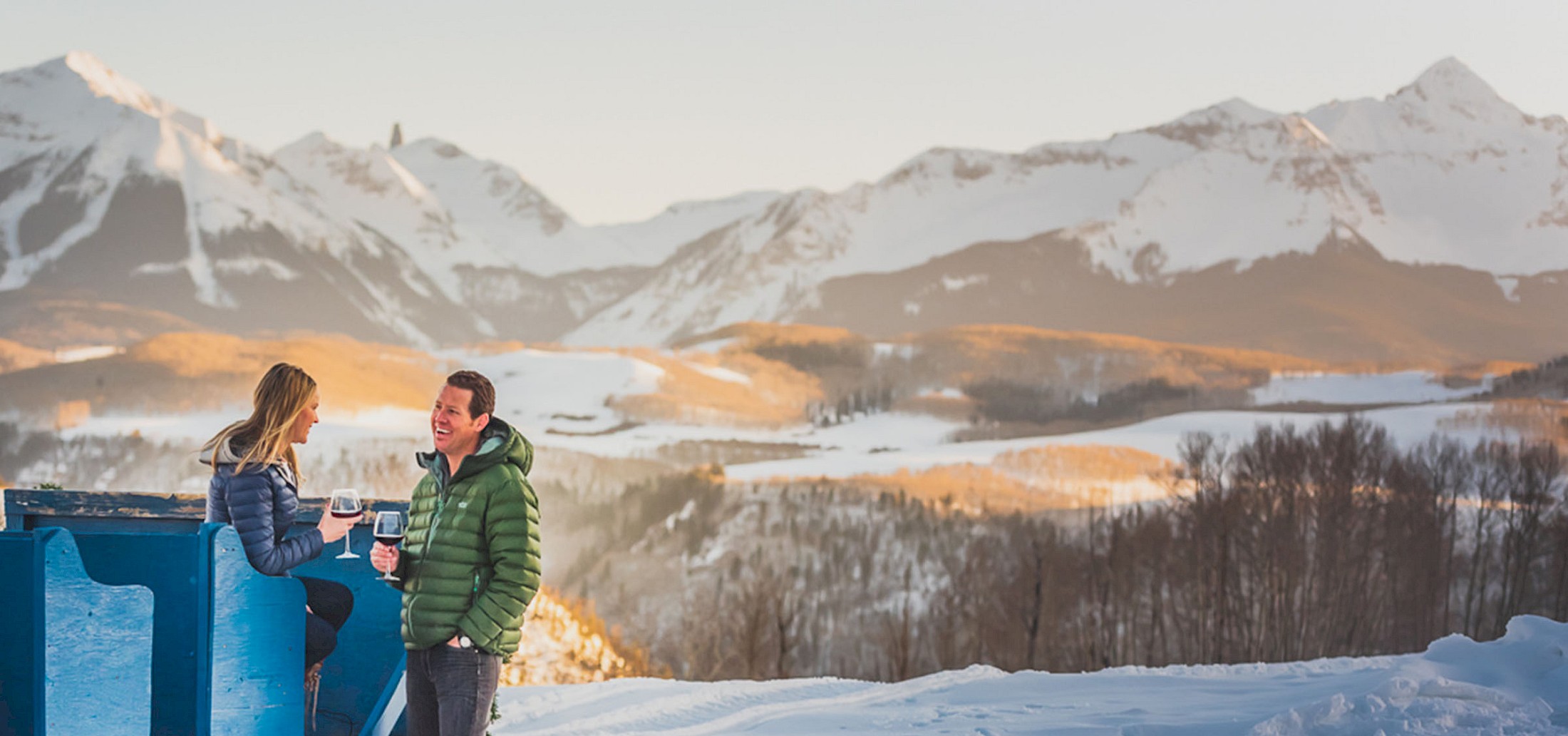 One of the highest restaurants in North America, Alpino Vino sits atop the Telluride Ski Resort, 12,000 feet above sea level. Diners arrive via the ski resort’s luxuriously outfitted snowcoach to the cozy and inviting restaurant beautifully situated alongside See Forever, above Buzz’s Glade. It’s a spot that offers unparalleled views across the slopes, westward to the Wilson Range. Alpino Vino’s exquisite location is matched by its exquisite cuisine: a five-course, Italian-themed menu overseen by chef Nicola Peccedi with the option of wine pairing by sommelier extraordinaire Andrew Shaffner, the ski resort’s wine director. Truly memorable.