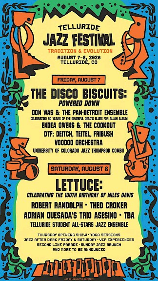 The 2026 Telluride Jazz Festival lineup has arrived! With two stages, this year's festival will feature special projects and boundary-pushing performances. This year, they’re expanding to two stages, creating a deeper conversation between where jazz comes from and where it’s going.The Main Stage will feature genre-fluid artists, special projects, and boundary-pushing performances. The Foundation Stage will focus on straightahead jazz and the core of the tradition.