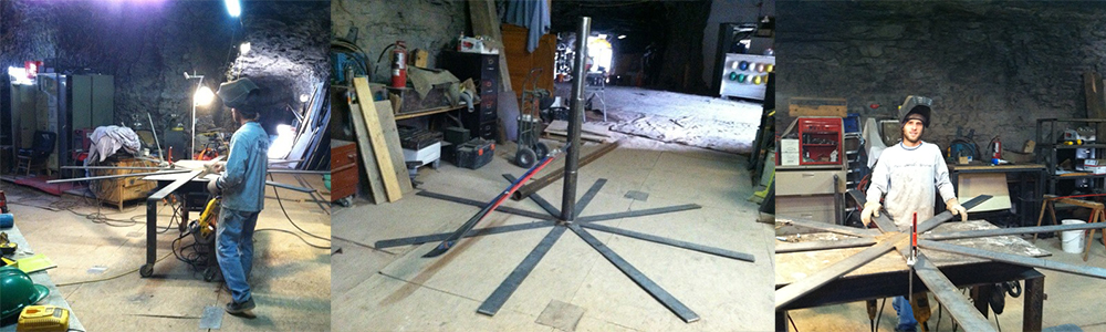 Local artist Anton Viditz-Ward was hired to create the tree, and Wilson, Daiva Chesonis, John Wontrobski, Will Thompson, Timmy Territo spent hours stripping the old bindings off in order to get the skis ready for production.