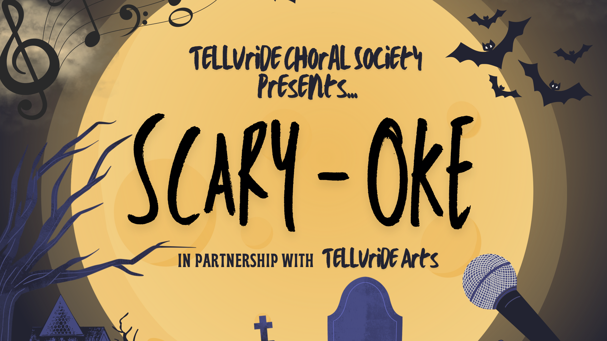 Come see your friends either reach karaoke immortality or (perhaps) crash and burn attempting to sing cover songs. Costumes encouraged, spooky snacks, thrilling music and maybe even some dancing. Evening ends in time to get to the KOTO Halloween bash later in the evening! A fun fundraiser for Telluride Choral Society and co-sponsered by Telluride Arts.