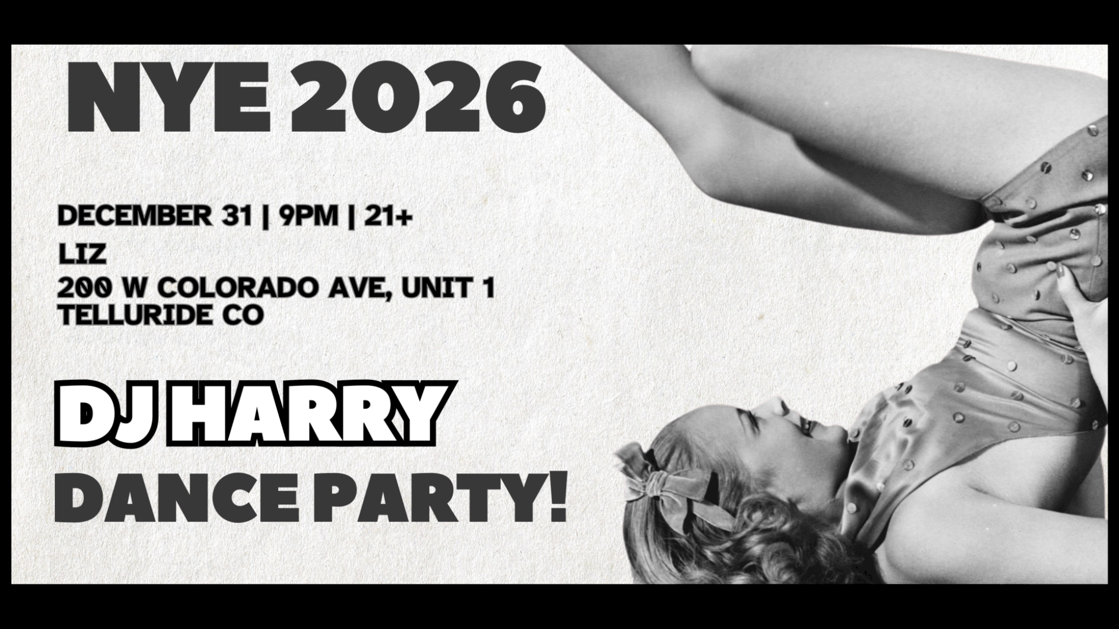 Telluride, let’s party! Join DJ Harry at LIZ, for the ultimate NYE dance party right in the heart of town, directly across from the NYE countdown at the clocktower. Big tunes, nonstop dancing, and mountain-town magic as they welcome 2026. Dress up or dress down—just bring your best energy, we go big in Telluride! DJ Harry on the decks from 10pm ’til late. DJ Harry is a nationally recognized artist and producer who often calls Telluride home. He has toured all over America for over two decades, playing every major city from Seattle to Miami, Los Angeles to New York City. He has performed at major festivals including Bonnaroo and Electric Forest, and he has headlined iconic venues such as Red Rocks, The Fillmore and the 9:30 Club. DJ Harry has worked with a diverse roster of bands and DJs including BoomBox, Widespread Panic and James Brown, and his original music has appeared in movies and television shows all over the world. DJ Harry knows how to rock a party…don’t miss it!! Must be 21+ Doors at 9pm. LIMITED CAPACITY - WILL SELL OUT!