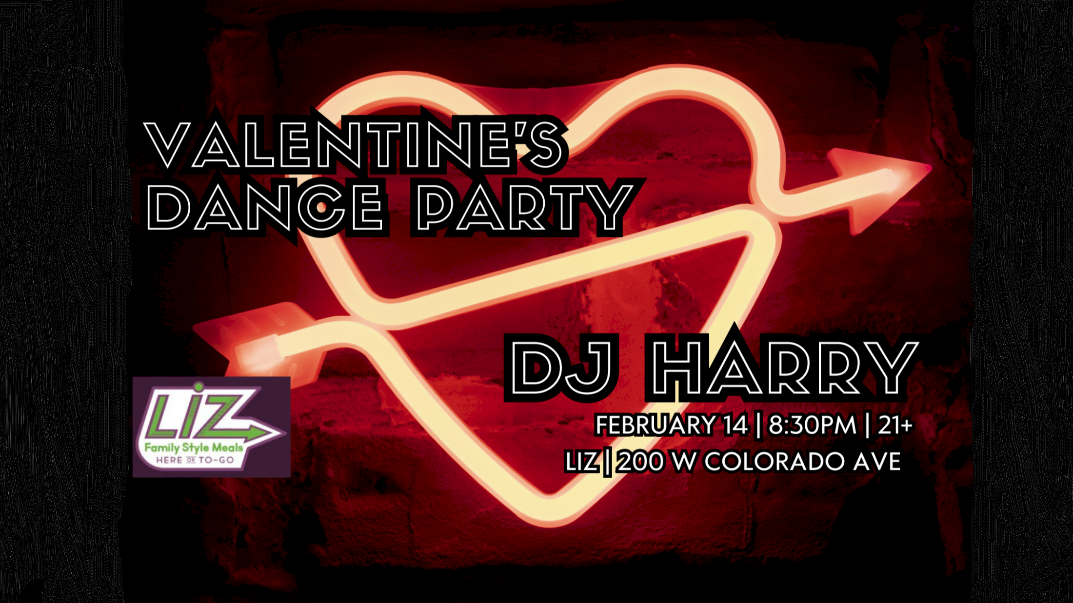 Valentine's Day Dance Party! Attention, Lovers! Get ready to dance the night away this Valentine's Day at LIZ. Everyone had so much fun at our New Year's Eve dance party, we're doing it again, Valentine's Day style! Do you miss the legendary nights at the Chocolate Lover's Fling? Come get your groove on, just like the good old days! Bring your lover or come solo and find love on the dance floor...just be sure to show up ready to boogie! A party at LIZ is all about good times and great company. DJ Harry spins all night! DJ Harry is a nationally recognized artist and producer who often calls Telluride home. He has toured all over America for over two decades, playing every major city from Seattle to Miami, Los Angeles to New York City. He has performed at major festivals including Bonnaroo and Electric Forest, and he has headlined iconic venues such as Red Rocks, The Fillmore and the 9:30 Club. DJ Harry has worked with a diverse roster of bands and DJs including BoomBox, Widespread Panic and James Brown, and his original music has appeared in movies and television shows all over the world. DJ Harry will make your Valentine's Day pop…don’t miss it!! Must be 21+ Doors and dancing at 8:30pm. LIMITED CAPACITY - WILL SELL OUT!
