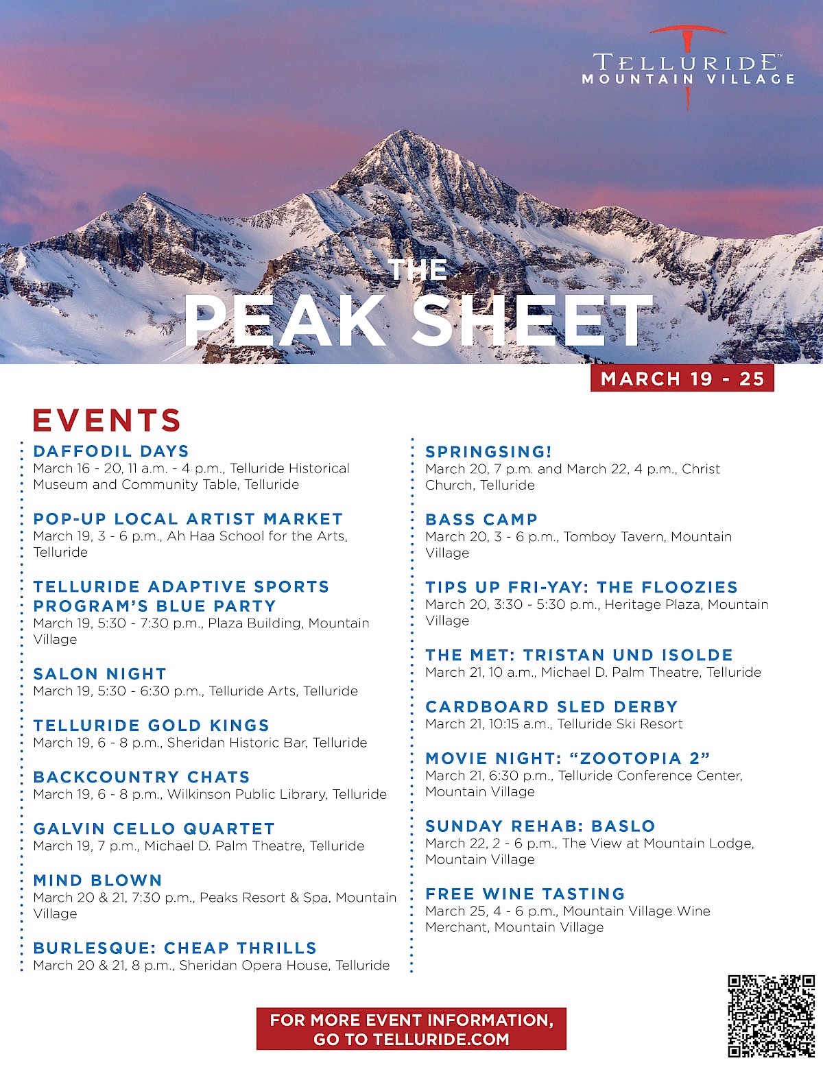 Peak Sheet: What's Happening in Telluride & Mountain Village