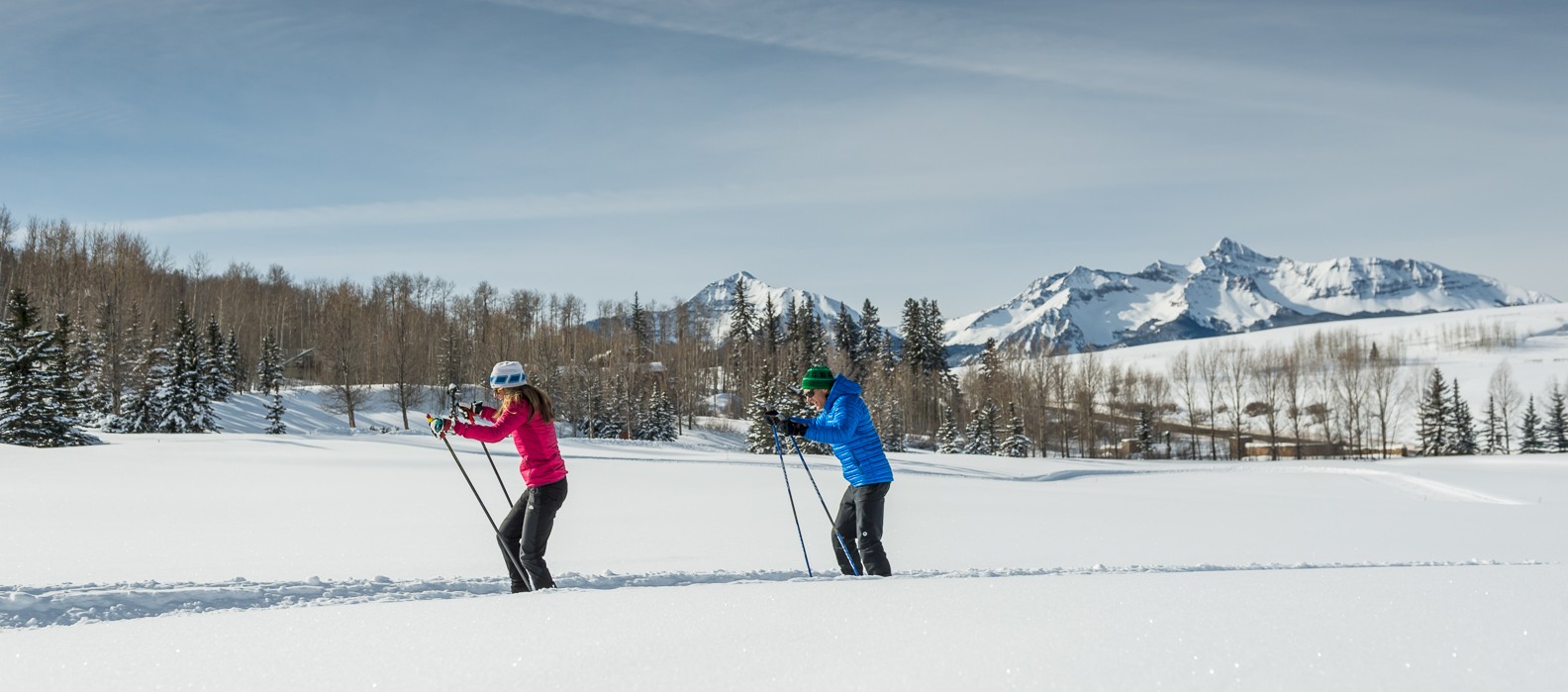 Nordic skiing in Telluride invites you to move through winter at its most peaceful pace. Glide across groomed tracks and scenic meadows beneath the towering peaks of the San Juan Mountains, where crisp air, rhythmic movement, and wide-open views create a deeply grounding experience.